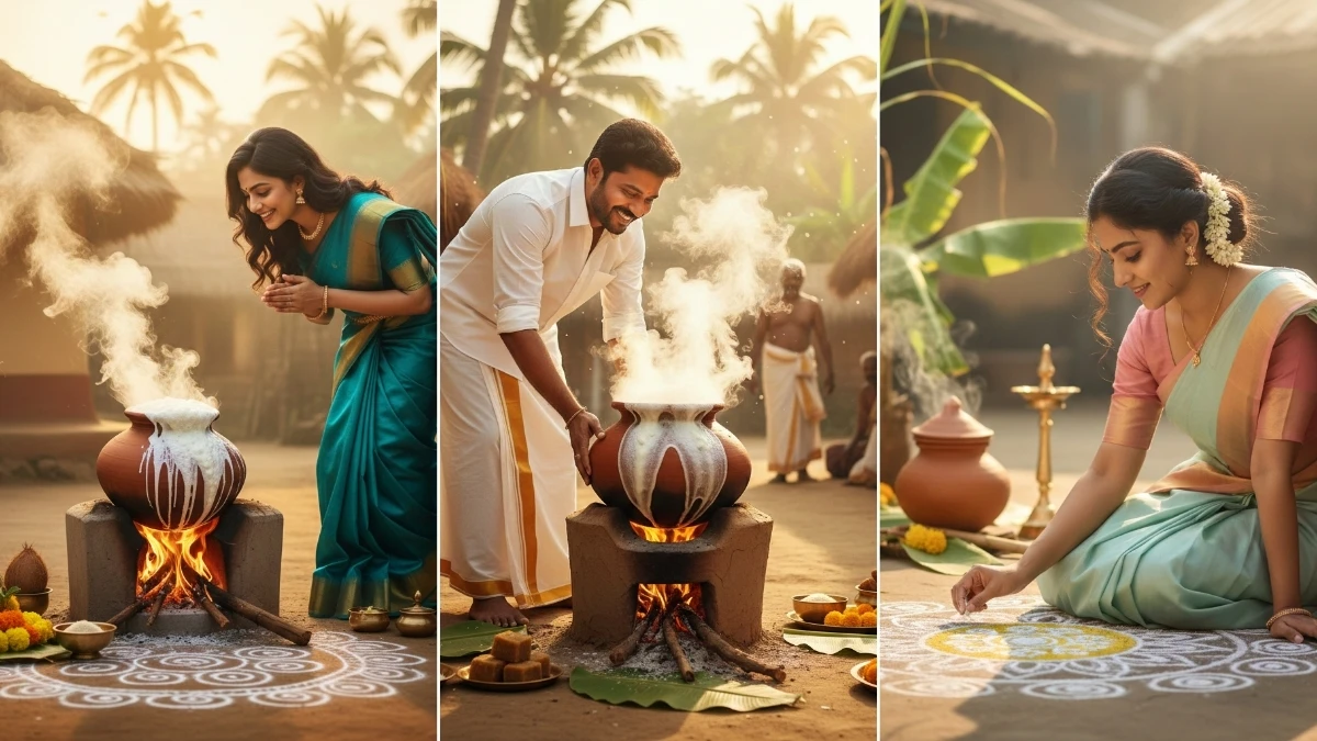 Best for: Pongal greeting posters, festive social media posts, cultural website banners, WhatsApp status images, and South Indian festival campaigns.