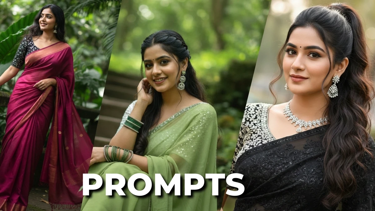 These must-try Gemini AI prompts for girls turn everyday photos into trending saree portraits with cinematic framing, high-fashion styling, and 4K detail tailor-made for Instagram, Reels, and Pinterest.