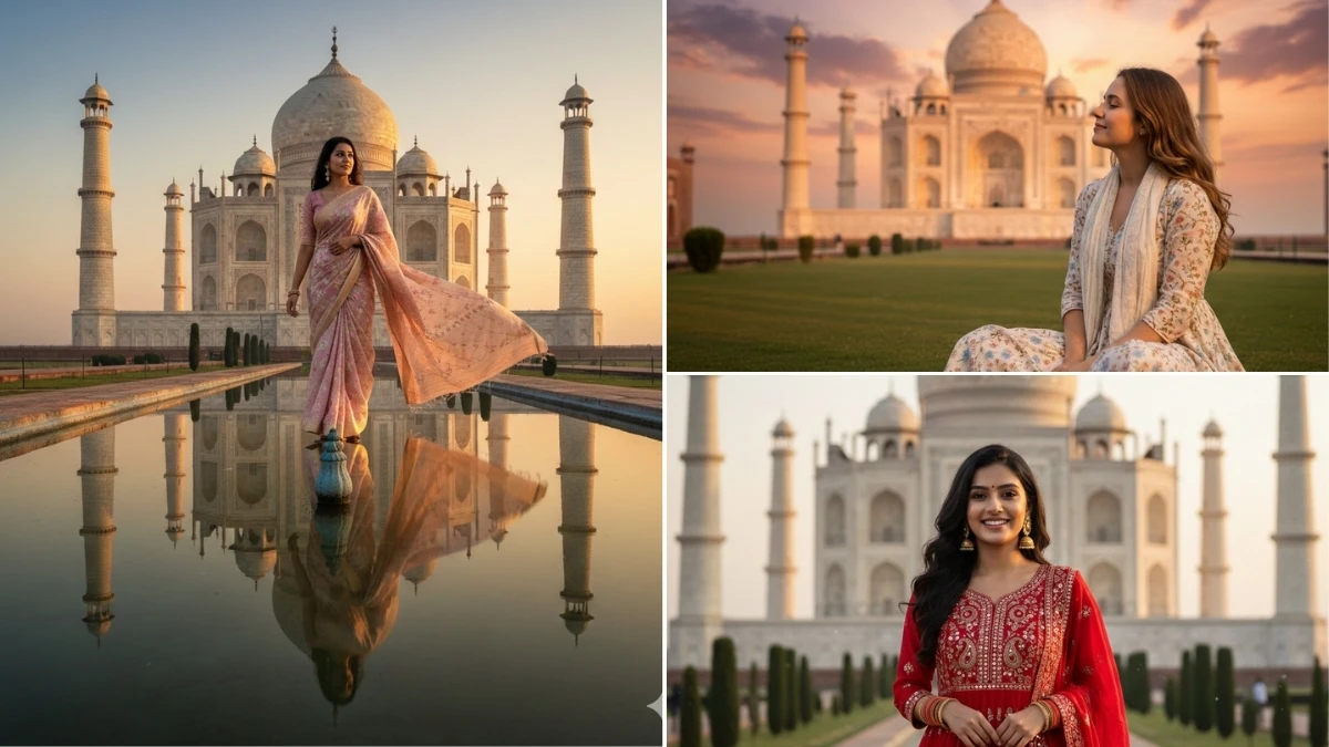 Qwen AI Photo Editing Prompts for Girls to Create Ultra-Realistic Taj Mahal HD Portraits