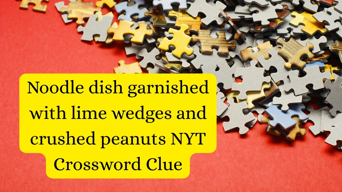 The New York Times crossword clue “Noodle dish garnished with lime wedges and crushed peanuts” is answered with PADTHAI.