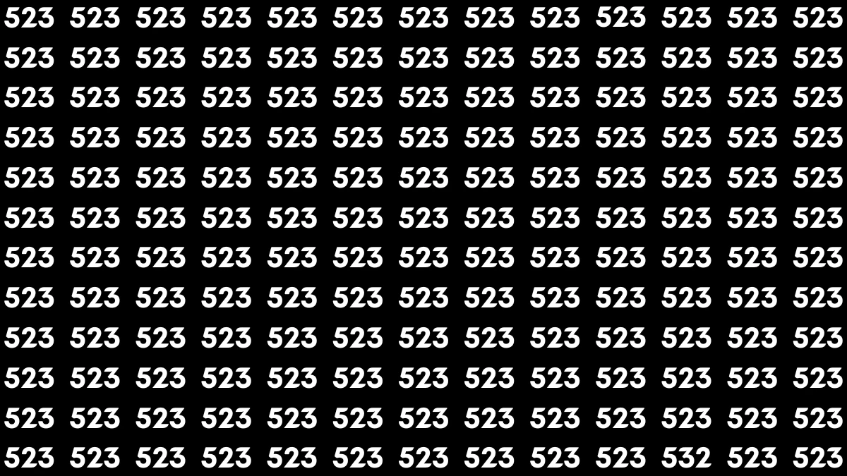 At first glance, this optical illusion looks intense but simple. The screen is filled with rows of the number 523, repeated again and again against a dark background. Everything feels uniform, predictable, and orderly.