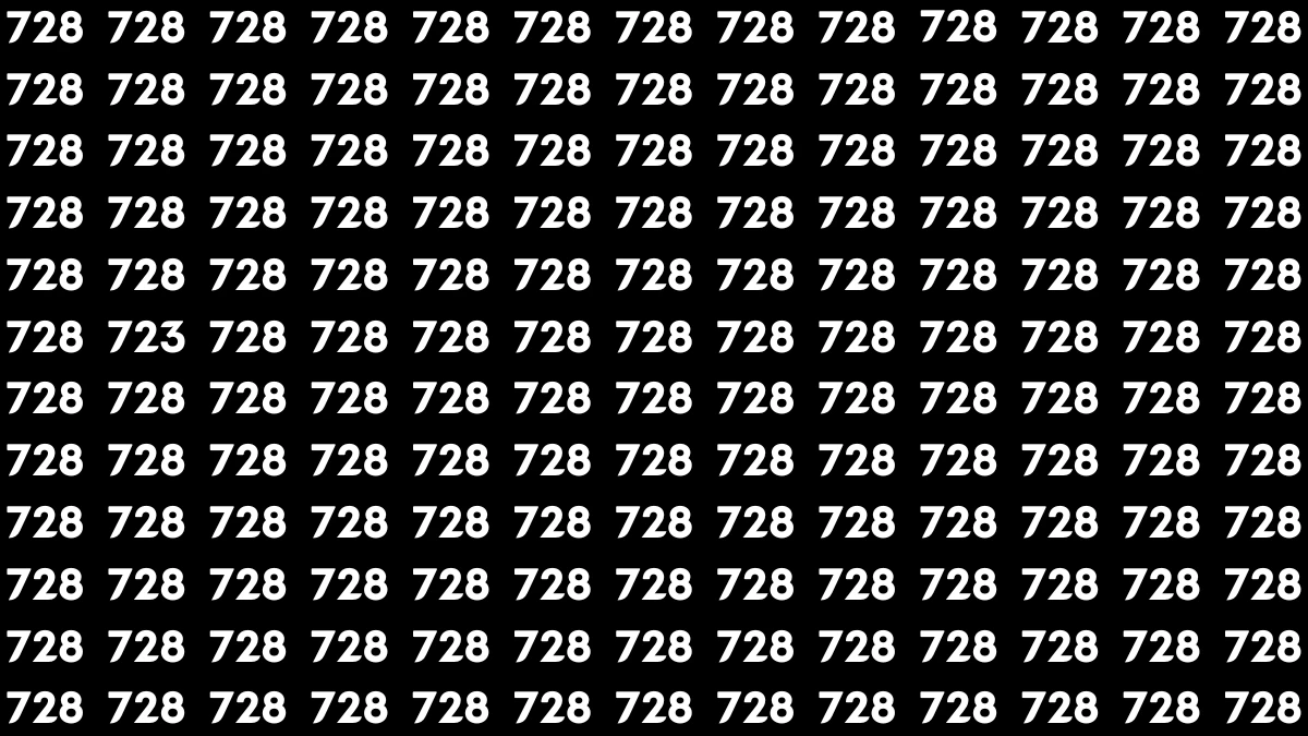 This optical illusion 8-second challenge is designed to test how quickly your eyes and brain can detect small visual differences in a repeated pattern. At first glance, the image appears to be filled entirely with the number 728, arranged in neat rows that encourage the brain to assume uniformity.