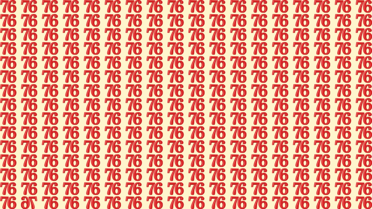 This optical illusion puzzle challenges your brain and visual perception by hiding an inverted 76 among several identical-looking 76s. At first glance, all the numbers appear the same, making it difficult to detect the odd one out within just 7 seconds.