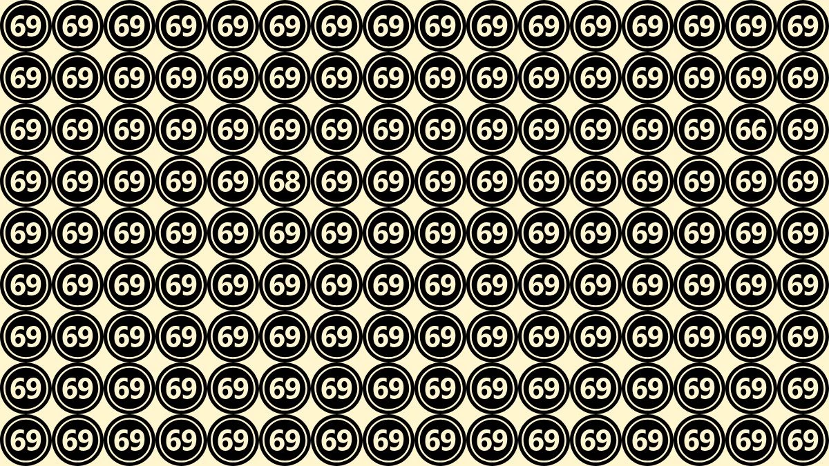 This optical illusion eye challenge is designed to test your focus, attention to detail, and speed. Can you spot two odd numbers 68 and 66 hidden among a grid full of 69s in just 6 seconds?