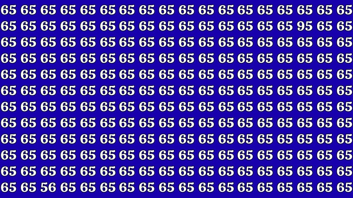 In this optical illusion puzzle, you’ll be given a grid filled with the number 65 repeated in every possible direction. The twist? Hidden within the grid are the numbers 95 and 56—and your goal is to spot them within 8 seconds!