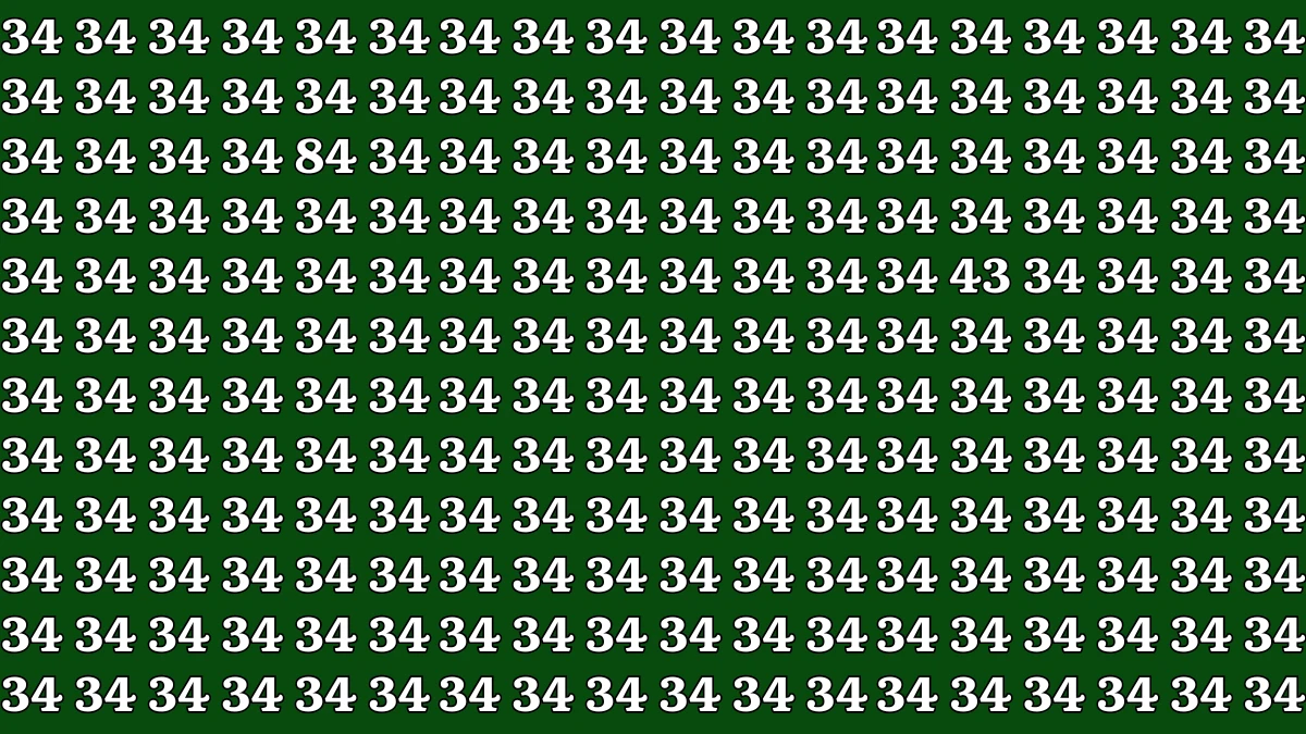 If you haven’t found them yet, don’t worry – they’re located in the image. You’ll notice the numbers 43 and 84 are positioned within the group of 34s. Now, let's make it a bit easier for you. Check out the image below with the numbers circled.