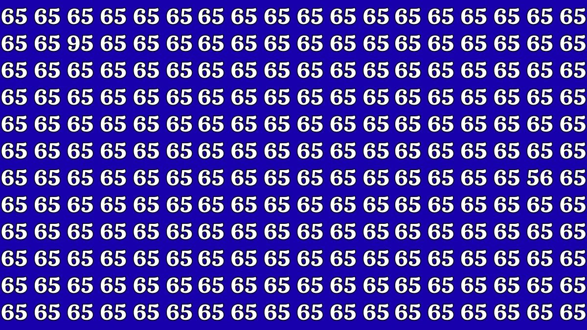 Optical illusion puzzles like this one are designed to quietly test how sharp your visual focus really is. At first glance, the image looks simple—just rows and rows of the number 65 on a bold blue background. But hidden inside this pattern are two intruders: the numbers 56 and 95.