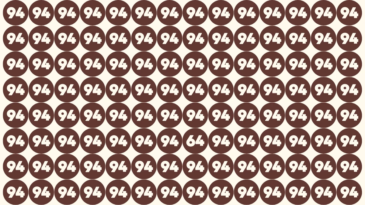 This optical illusion puzzle is designed to test your visual focus, attention to detail, and reaction speed. Can you spot the number 64 hidden among a grid of 94s in just 5 seconds?