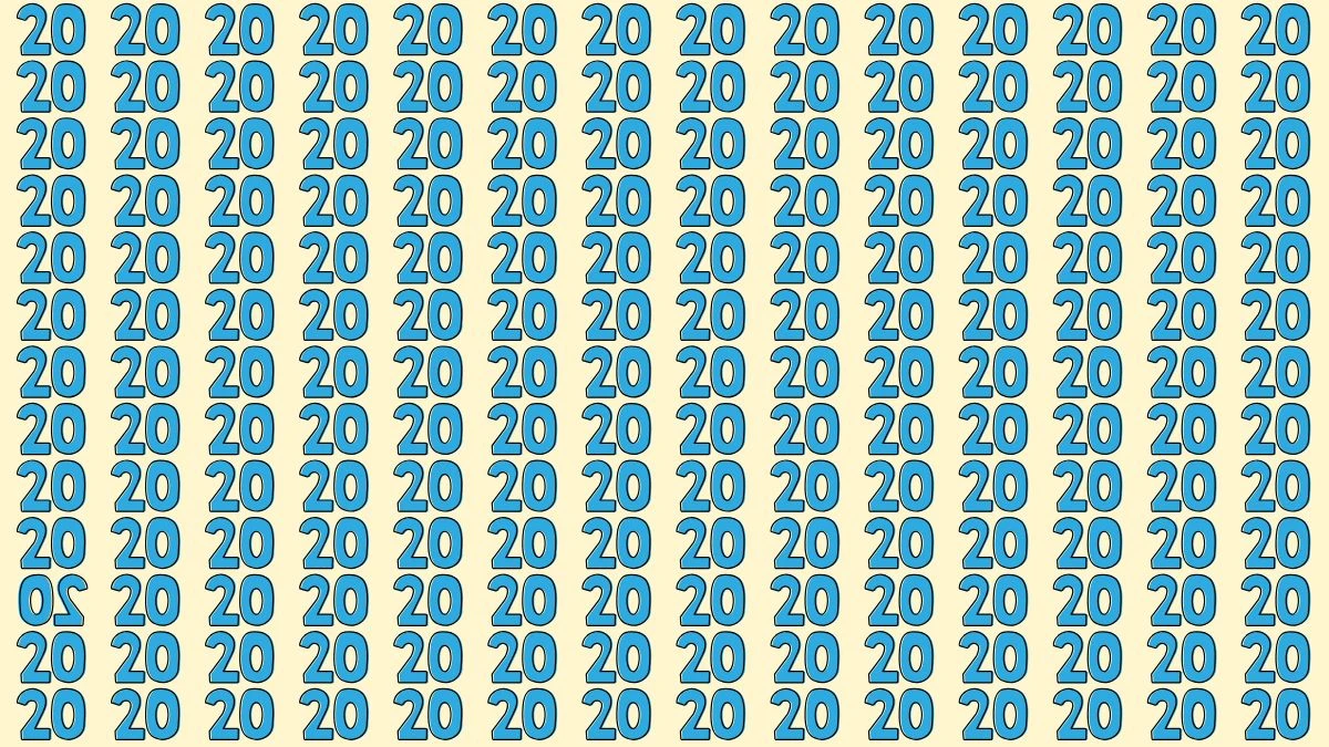 At first glance, every number looks identical, which causes the brain to assume there is nothing unusual. However, hidden among these identical numbers is one inverted 20 that breaks the pattern.
