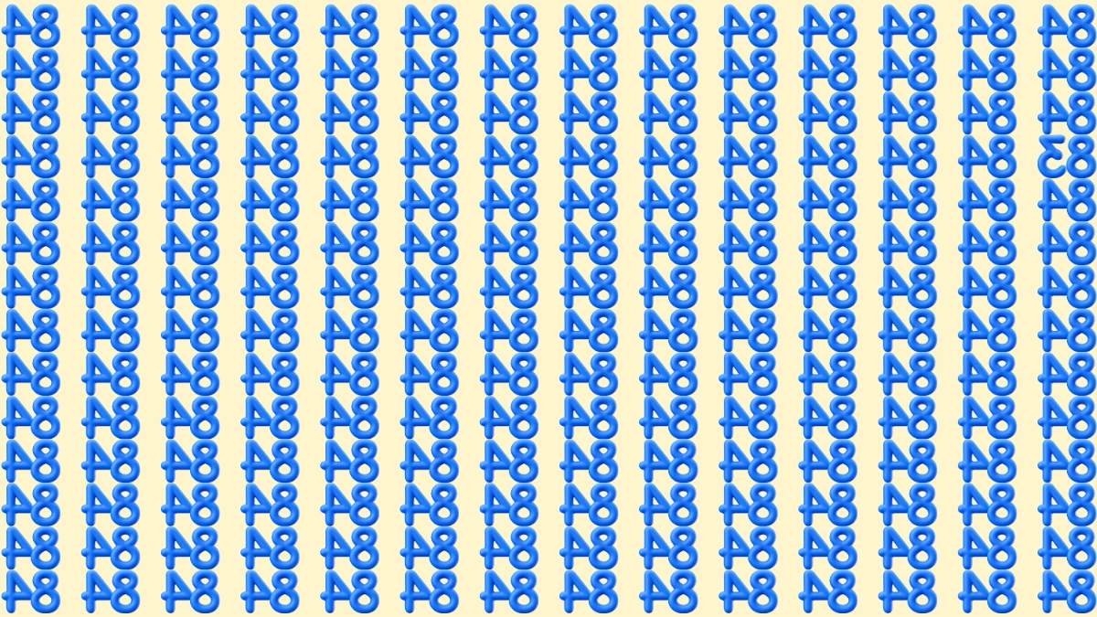 By scanning column by column and comparing the angle of the “4” in each “84,” you can spot the one pair where the right digit curves like a “3” rather than closing into a “4,” revealing the lone inverted “83” that you were challenged to find in under eight seconds.