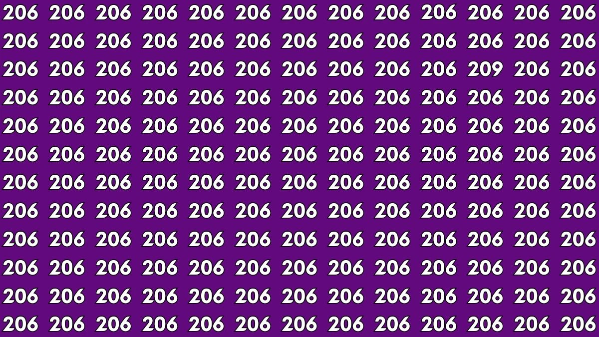 At first glance, this image looks like a simple, repetitive grid of numbers. The pattern seems uniform 206 appearing over and over again. But there’s a twist. Hidden somewhere among these repeating numbers is a 209. Your challenge: Spot the 209 in just 7 seconds.