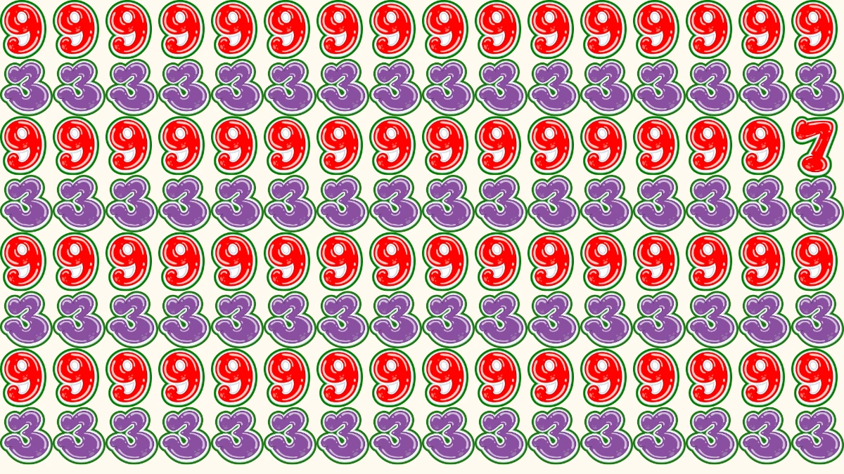 Are you up for a fun and mind-bending challenge? In this optical illusion, your task is to spot the number 7 hidden among the repeated 9s and 3s. But here’s the catch — you only have 5 seconds to find it! This puzzle will push your focus and perception to the limit. So, can you spot it in time? Let's put your eyes to the test!