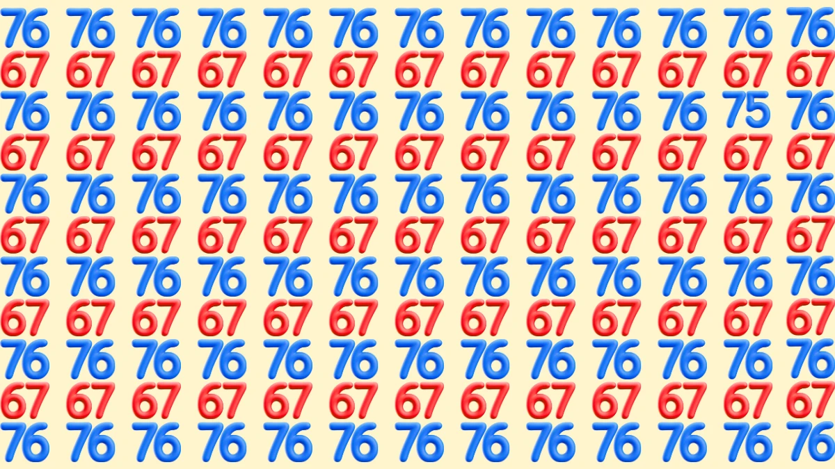 Are you ready for a fun and challenging optical illusion? This visual puzzle will test your speed and sharpness in spotting subtle differences between numbers. In this puzzle, your task is to find the hidden number 75 among the numbers 76 and 67, but there’s a catch—you only have 7 seconds to spot it!