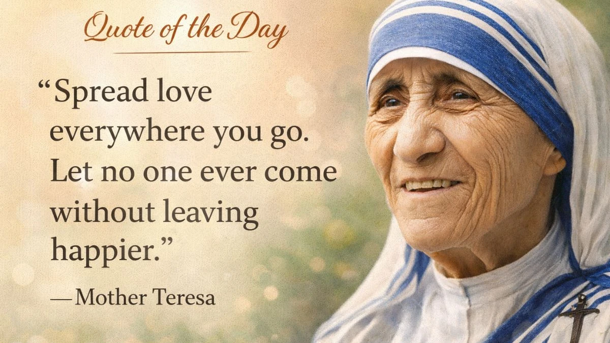 Today’s Quote of the Day comes from Mother Teresa, the Albanian-Indian Catholic nun and humanitarian best known for her lifelong work with the poor and the sick. The quote highlights the quiet but transformative power of compassion in everyday interactions. Rather than focusing on grand gestures, it emphasizes personal responsibility in human relationships. Its enduring relevance lies in its simplicity and practical moral clarity.