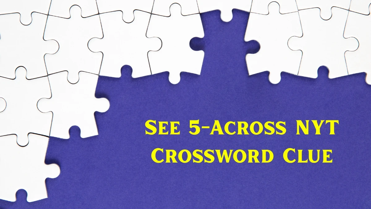 - “See 5-Across” is a typical cross-reference clue: it tells you that 7-Across is not stand-alone, but the second half of the longer phrase defined at 5-Across.