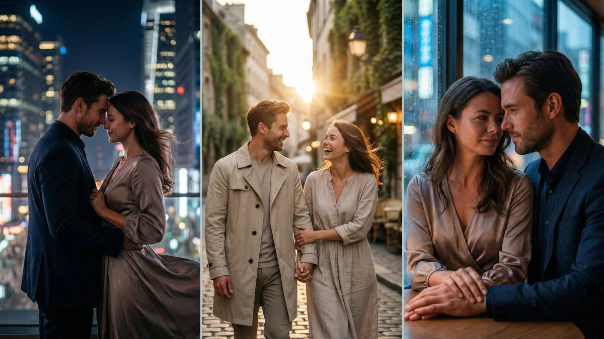 This curated set of prompts is built for couples who want their images to look like stills from a romance movie warm streets, glowing rooftops, misty windows, and sunset horizons all crafted in crisp HD without losing the real connection between two people.
