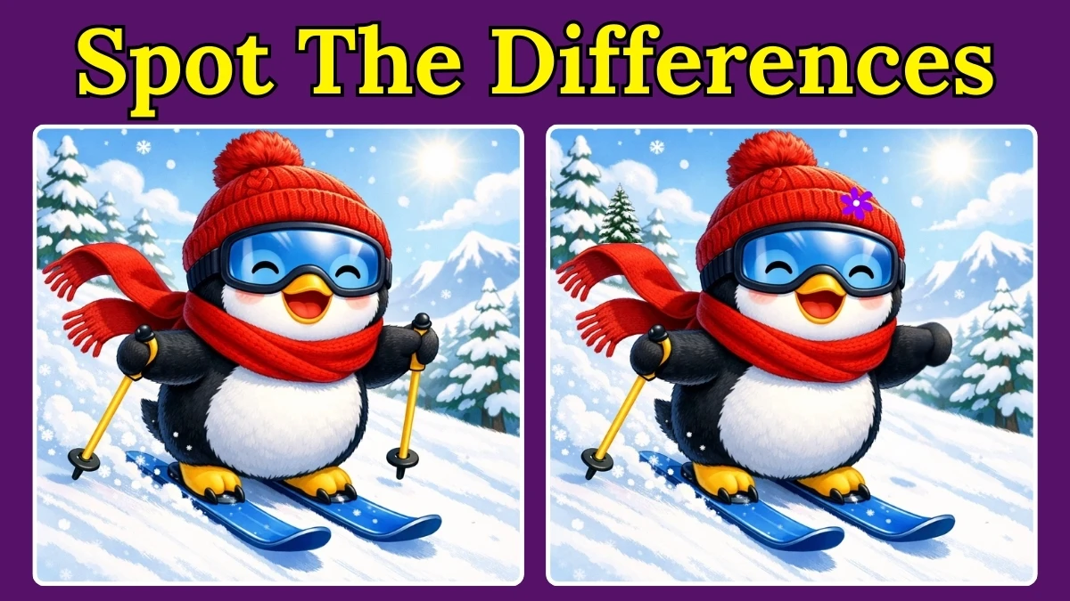 Take a close look at the two side-by-side images below. They appear almost identical at first glance a cheerful penguin decked out in a red hat, scarf, and blue goggles, gliding on blue skis amid a picturesque winter wonderland with trees, mountains, and falling snow. But there are subtle changes. Start your timer now!