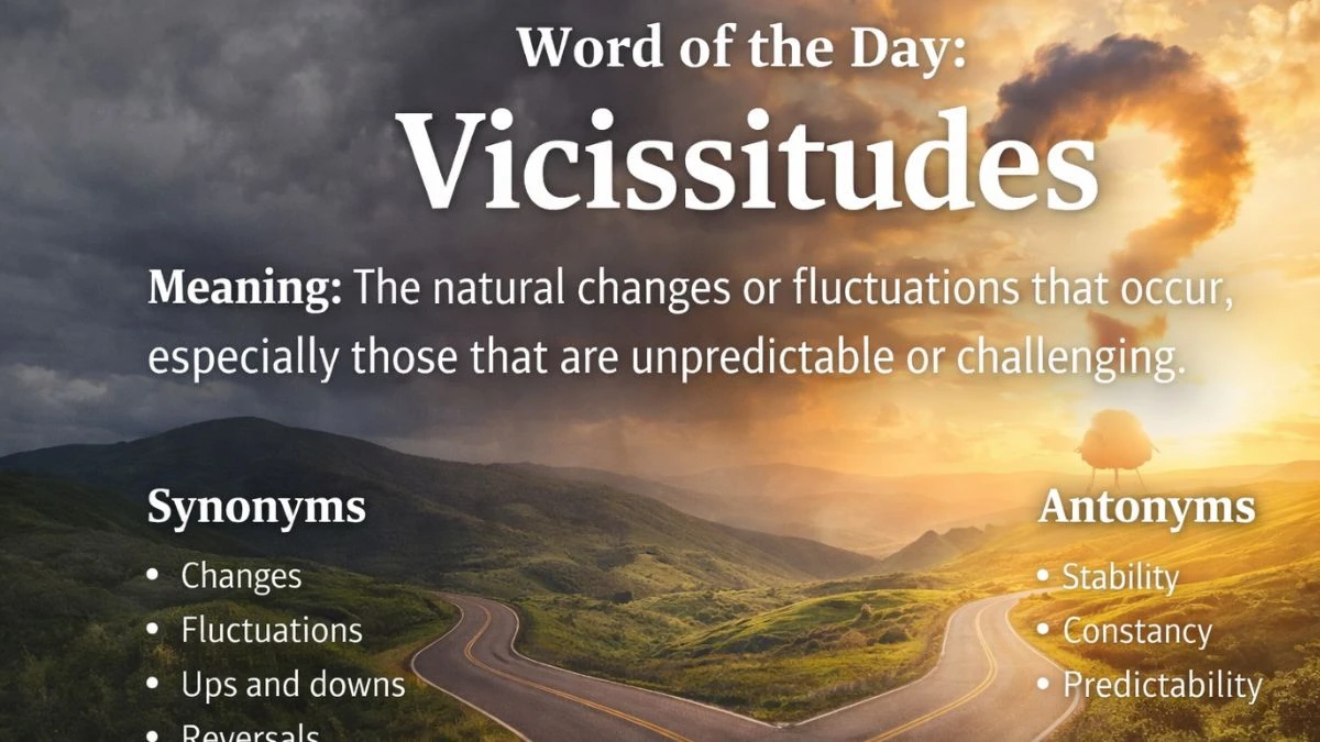 Today's word of the day is vicissitudes, a term that refers to the inevitable changes or fluctuations in life’s circumstances. Whether it’s in personal experiences or historical events, vicissitudes highlight the unpredictable nature of our journey through time.